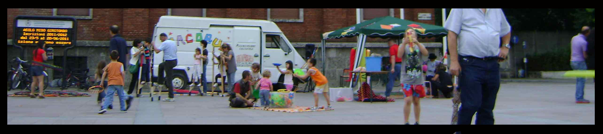Il CIRCOBUS è una fantastica unione tra spettacolo, animazione e laboratori. E’ un intervento spettacolare unico in Italia e completo, che crea un reale coinvolgimento dei bambini e degli adulti che vi partecipano. Tutti diventano i veri protagonisti dell’evento. Lo staff del CIRCOBUS arriva nella piazza o nel luogo prescelto ed è in grado in breve tempo di allestire lo spazio ed offrire a gruppi di bambini, ragazzi e adulti un gioioso, istruttivo e coinvolgente laboratorio di Piccolo Circo, centrato sulle discipline circensi della giocoleria, dell’equilibrismo, dell’acrobatica e della clownerie.